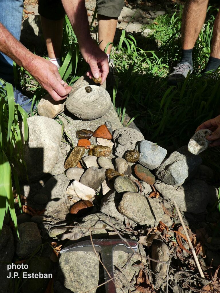 Ces galets, récoltés, observés sur place à l’œil nu et à la loupe sont identifiés ; ce sont des roches avec des origines diverses .