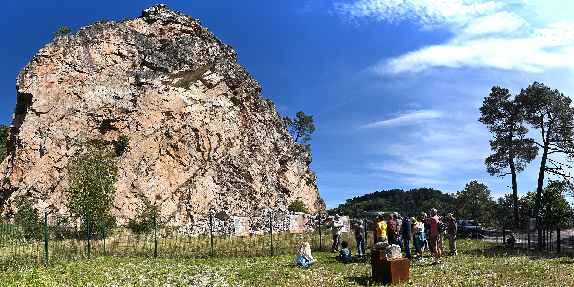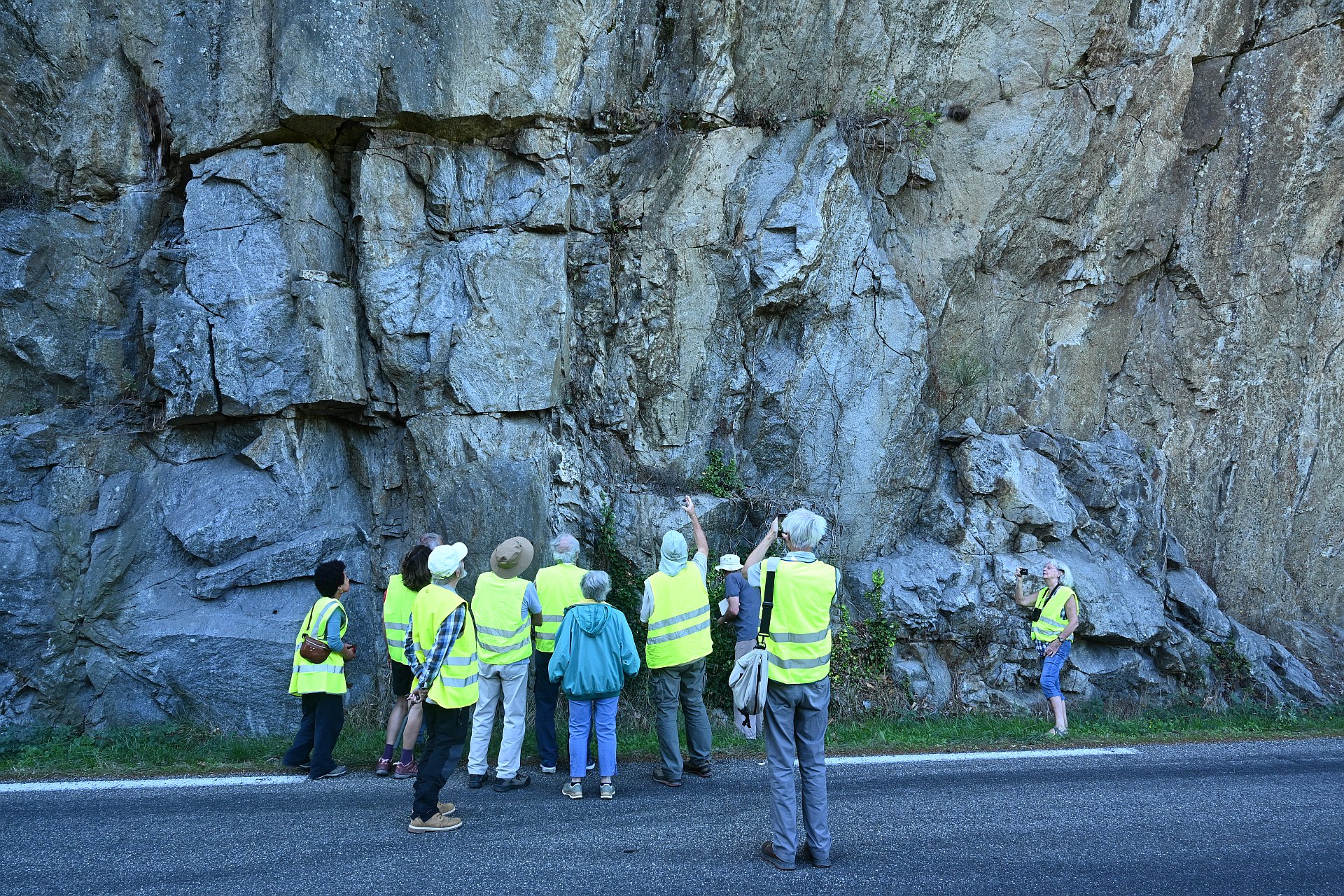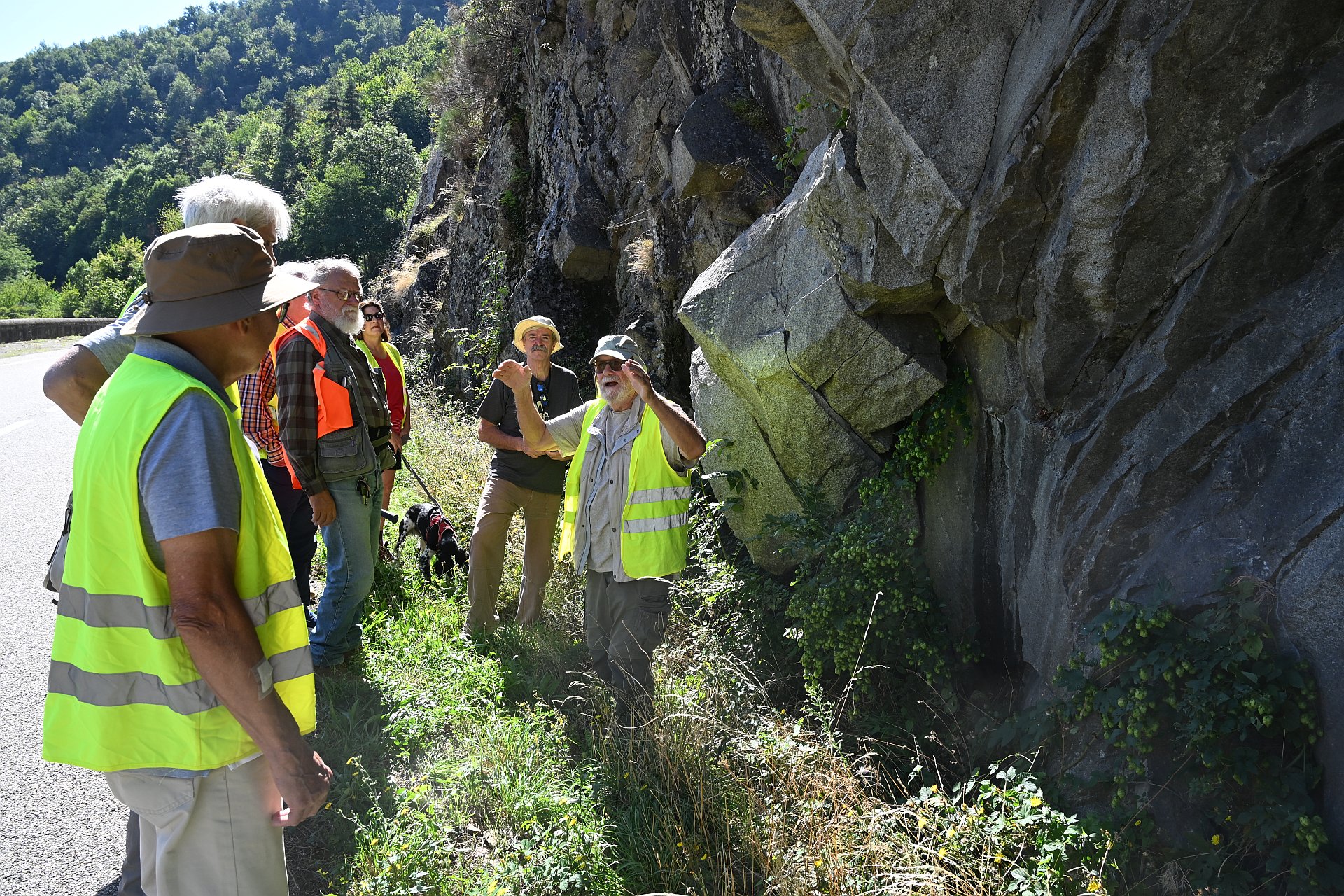 L’après midi, sur le géosite de la carrière de Chalencon, Michel Beurrier a présenté la mise en place des roches observées dans le cadre de la tectonique des plaques. Puis, il a  décrit certaines méthodes de datation isotopiques.