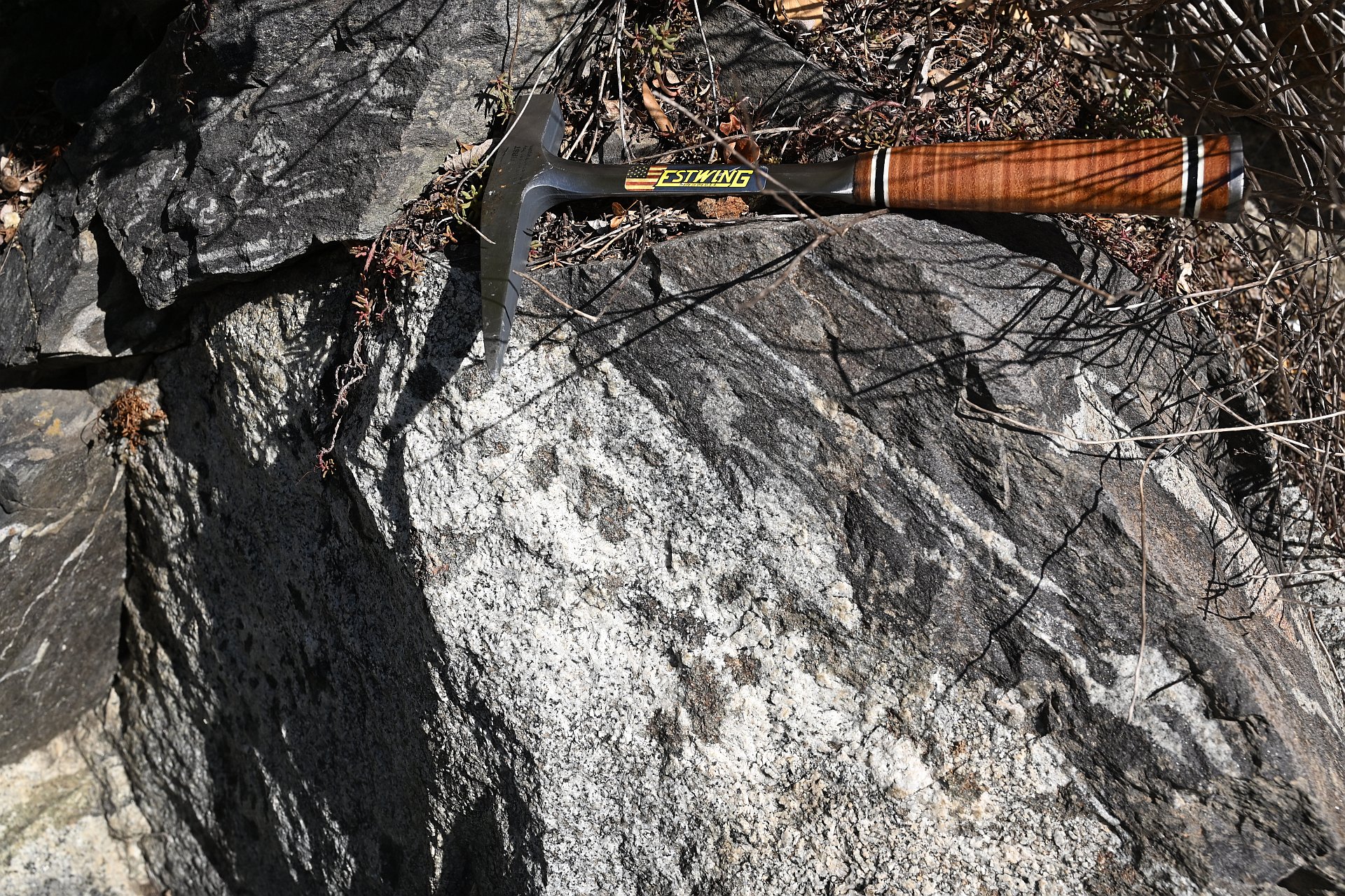 arrèt 7 Belvédère gneiss avec gros cristaux de feldspath